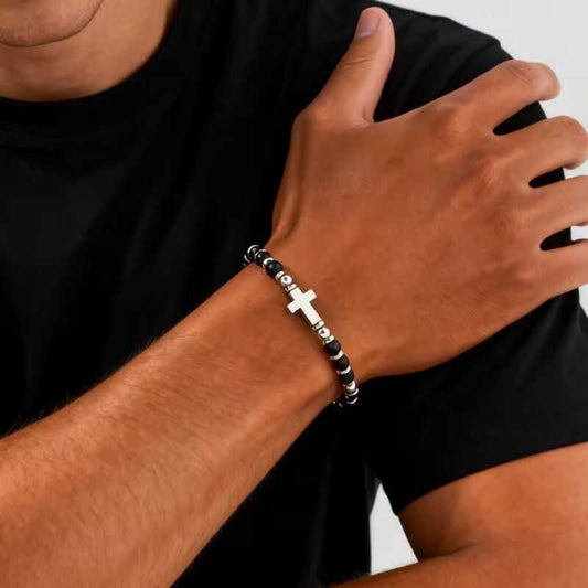 Set de Pulseras Hematita y Cruz
