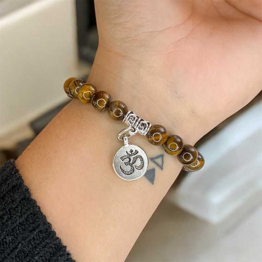 Pulsera Doble Ojo de Tigre y Reconstituida Beige