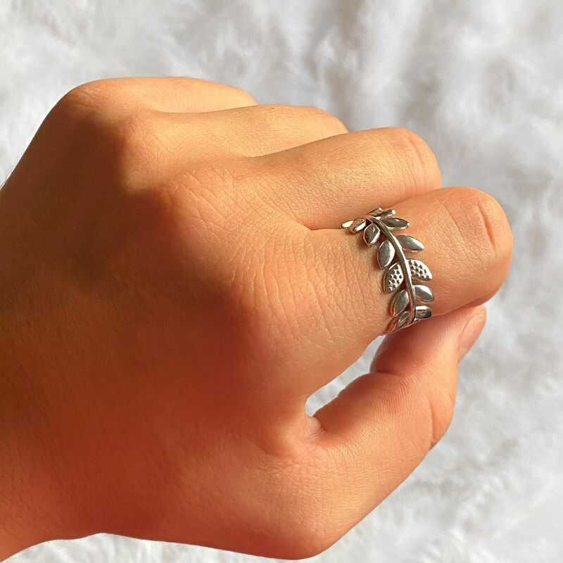 Anillo en acero quirúrgico con diseño de Hojas. Disponible en colores dorado y plateado.