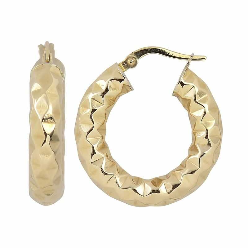 2 Caravanas, aros, aritos en acero quirúrgico dorado diseño Facetado.
