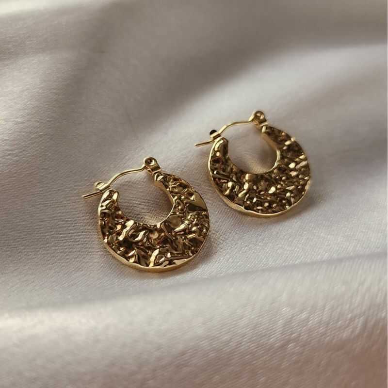 2 Caravanas, aros, aritos en acero quirúrgico dorado, con diseño facetado.