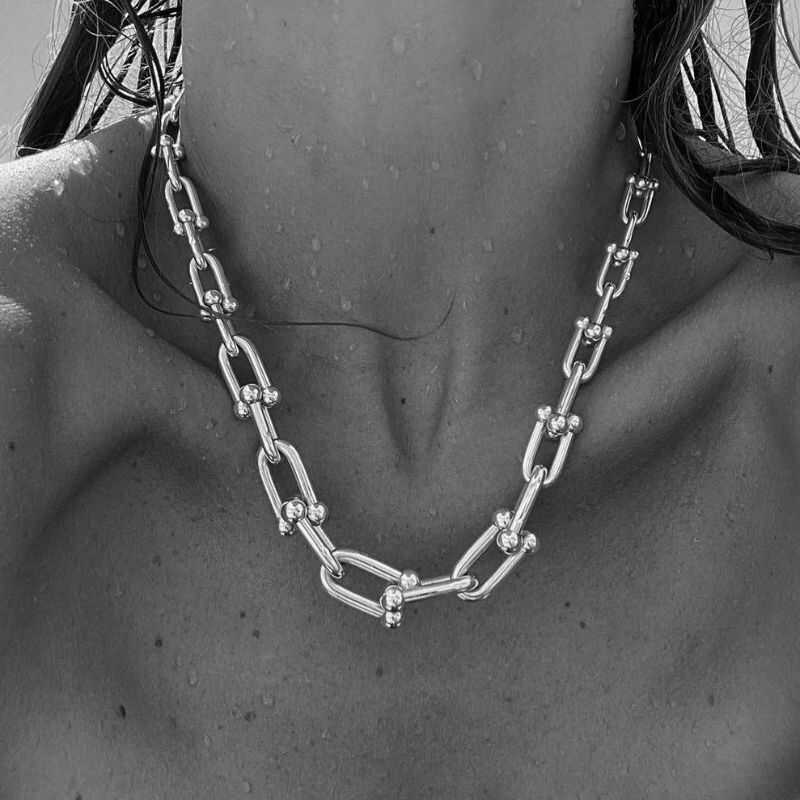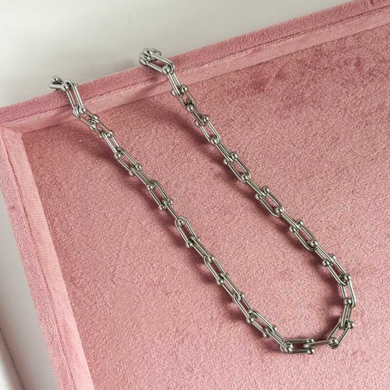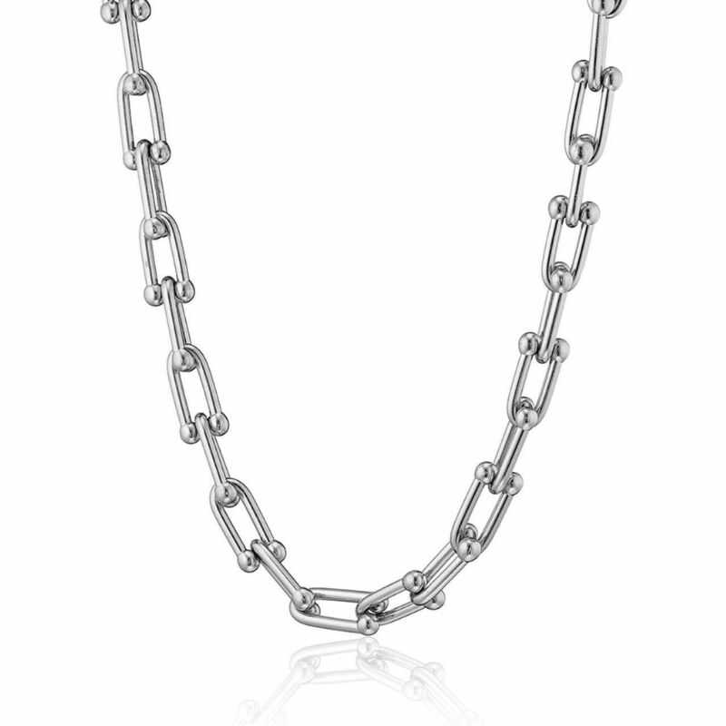 Cadena collar colgante en acero quirúrgico plateado. Diseño de eslabones tipo en u, grillete en u, eslabones alargados.