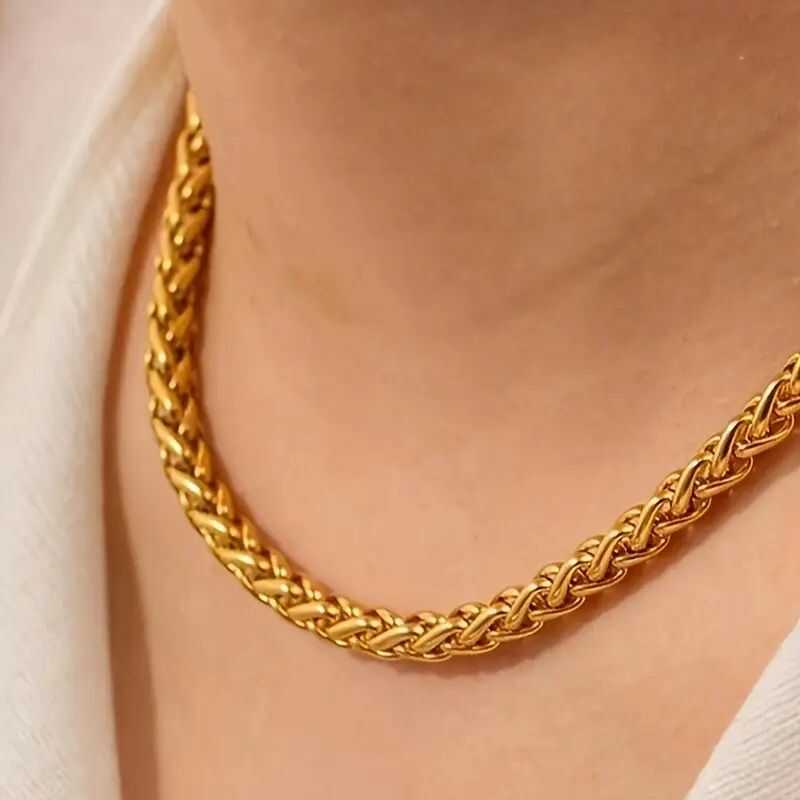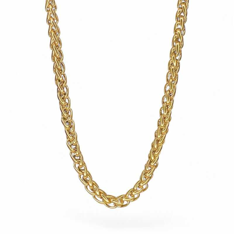 Cadena en acero quirúrgico dorado, diseño Espiga gruesa.