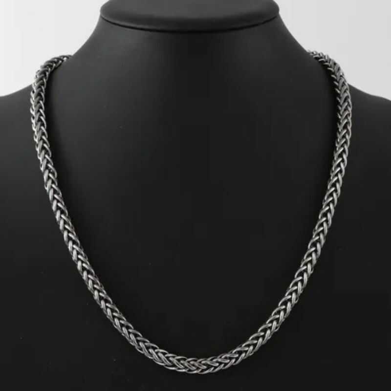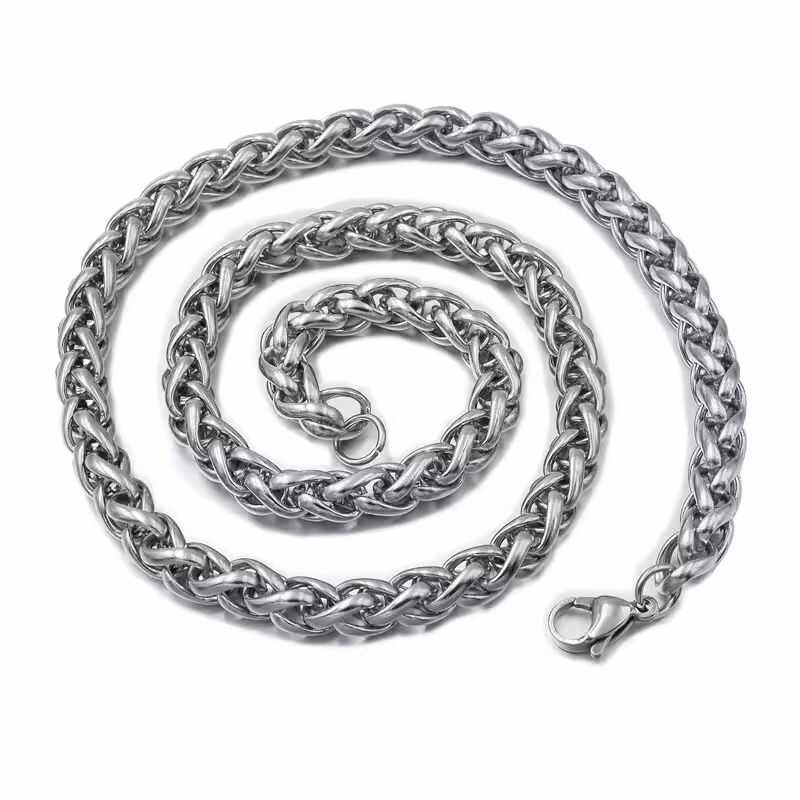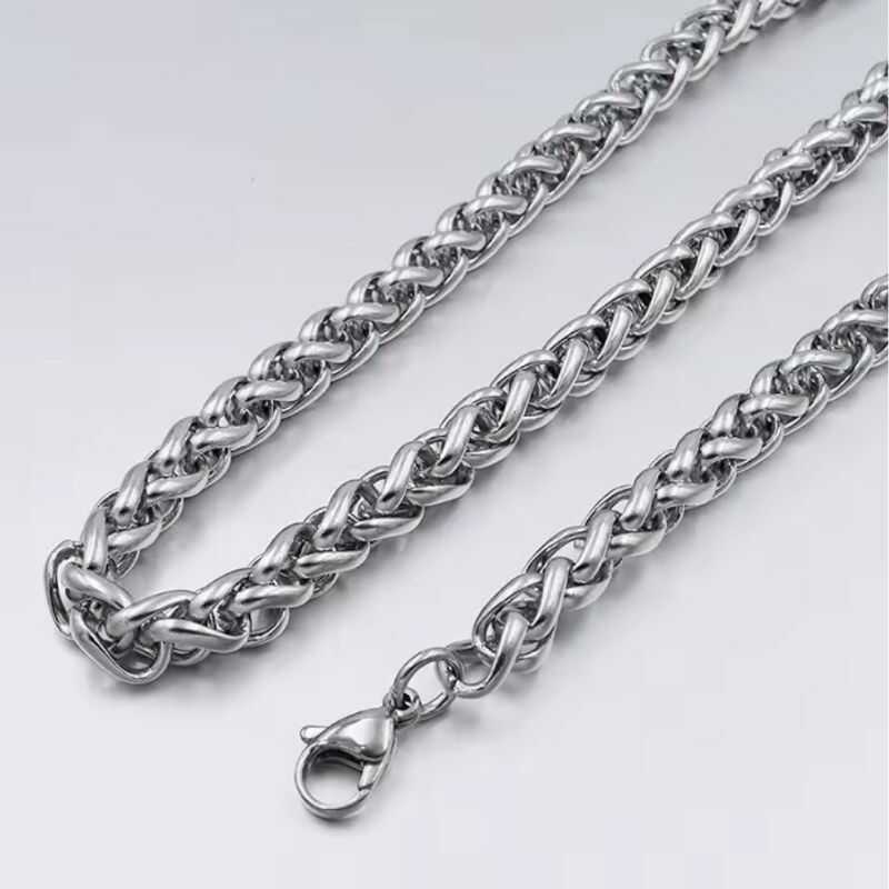 Cadena en acero quirúrgico plateado, diseño Espiga gruesa.