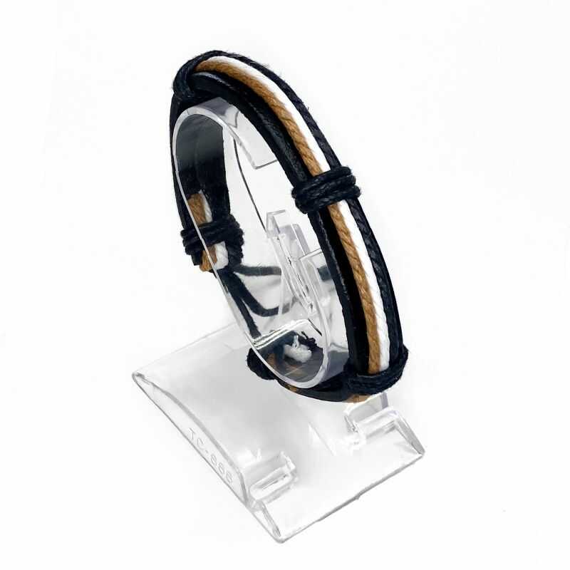 Pulsera de eco cuero negra combinada ajustable, diseño Inca.