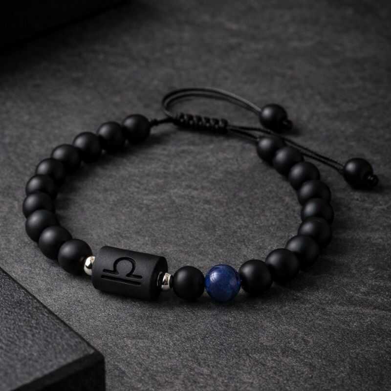 Pulsera ajustable a todos los talles de piedras con dije de signo zodiacal Libra.