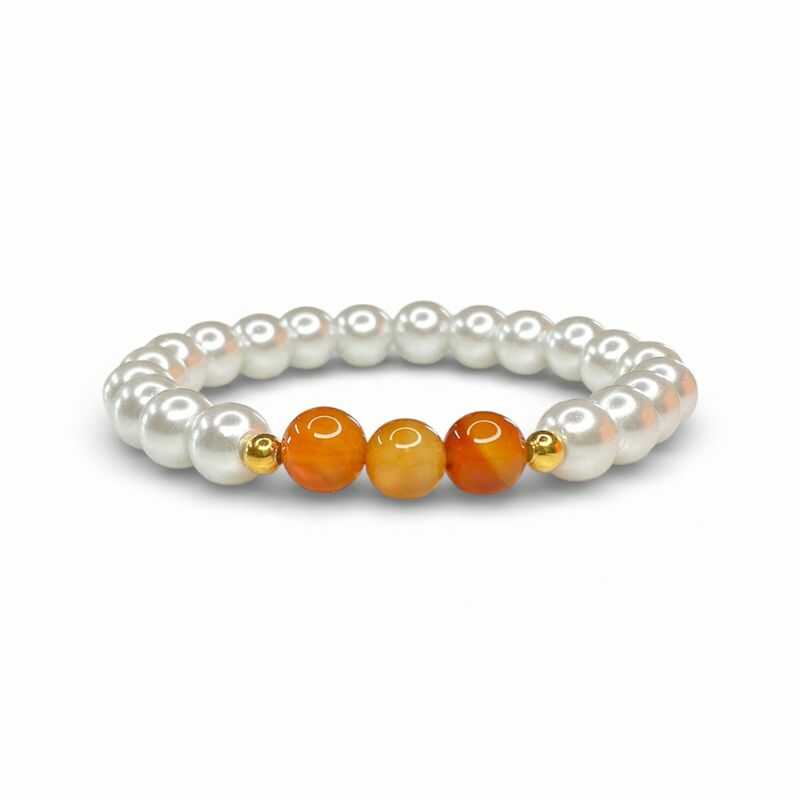 Pulsera de perlas de vidrio y piedras naturales Cornalina.