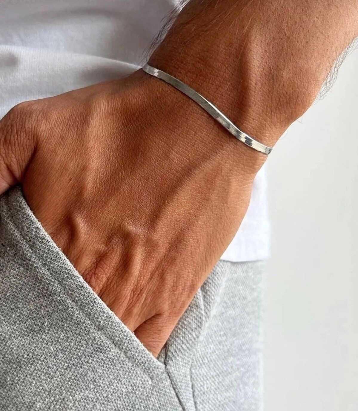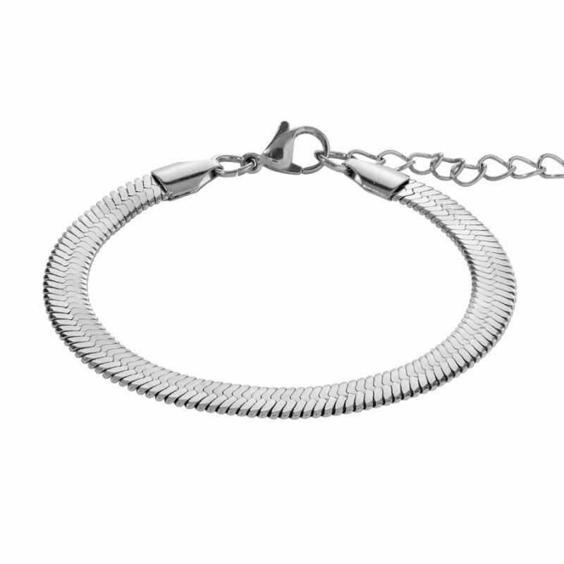 Pulsera en acero quirúrgico plateado, diseño Snake