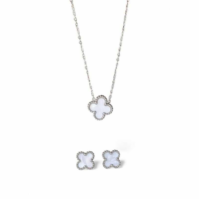 Set de cadena + dije + caravanas de trébol en acero quirúrgico.